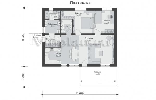 | Размеры дома: | 12.43м×11.62м |